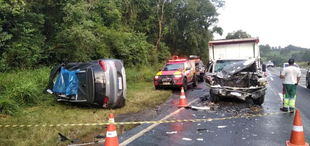 Ainda conforme a PRF, com a força do impacto os dois ocupantes do carro morreram na hora, enquanto o condutor e o passageiro do caminhão não sofreram ferimentos. O socorro chegou a ser acionado, mas nada pôde ser feito.