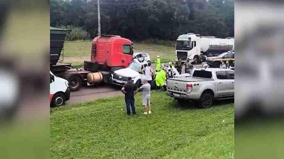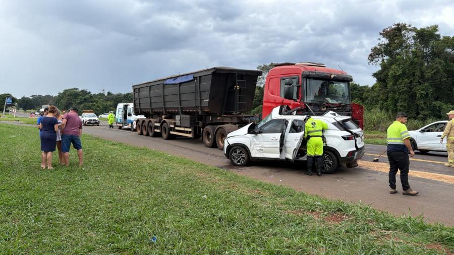 A batida frontal envolveu um SUV, um caminhão carregado com farelo de soja e uma caminhonete. Com a força do impacto, os veículos ficaram destruídos. A criança morreu ainda no local, conforme confirmação da Polícia Rodoviária Federal.