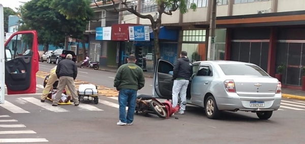 A moto Honda Biz 100 cilindradas e um Cobalt se envolveram em uma colisão na manhã desta quarta-feira em Toledo.