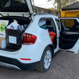 Veículo BMW X1 carregado com grande quantidade de aparelhos celulares foi apreendido na PR 180, entre Nova Aurora e Quarto Centenário. A ação foi realizada pela PRE (Polícia Rodoviária Estadual) no quilômetro 255.