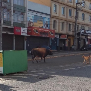 A presença de um boi, flagrado em um "passeio" pelas ruas do Centro de Ponta Grossa, nos Campos Gerais do Paraná, chamou a atenção de moradores neste domingo (24).
