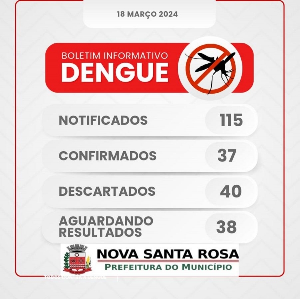 A Prefeitura de Nova Santa Rosa, através da Secretaria de Saúde, divulgou hoje segunda-feira (18) o Boletim Informativo Semanal da Dengue: