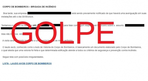 Nas últimas semanas, observamos um aumento significativo no número de e-mails e mensagens de texto enviadas para celulares e aplicativos, contendo informações falsas sobre supostas fiscalizações que o Corpo de Bombeiros Militar do Paraná realizaria em determinadas datas. Gostaríamos de esclarecer que o Corpo de Bombeiros Militar do Paraná não envia e-mails ou mensagens de texto informando datas de fiscalização. Trata-se de um golpe, e é crucial que os destinatários não cliquem em links contidos nessas mensagens nem forneçam as informações solicitadas.