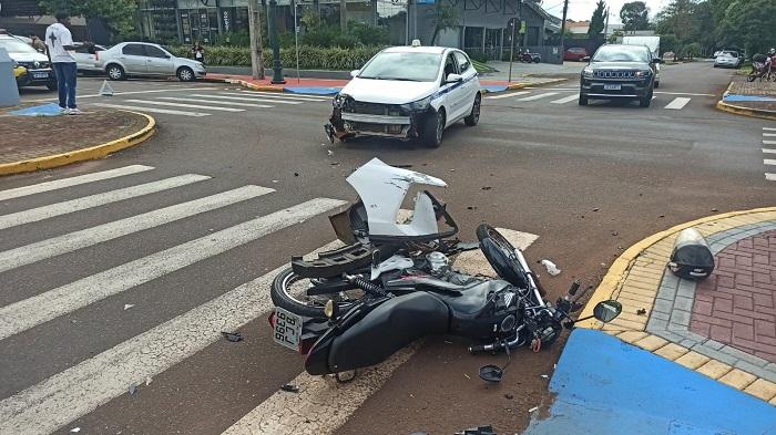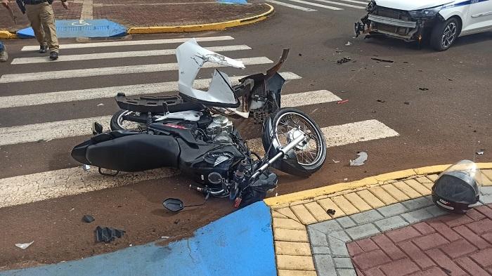 Na manhã desta sexta-feira, em torno das 08h30, um motociclista de 26 anos resultou com ferimentos moderados, a informação é dos bombeiros de Toledo que atenderam a colisão na Barão do Rio Branco, esquina com a General Canrobert Pereira da Costa, centro da cidade.