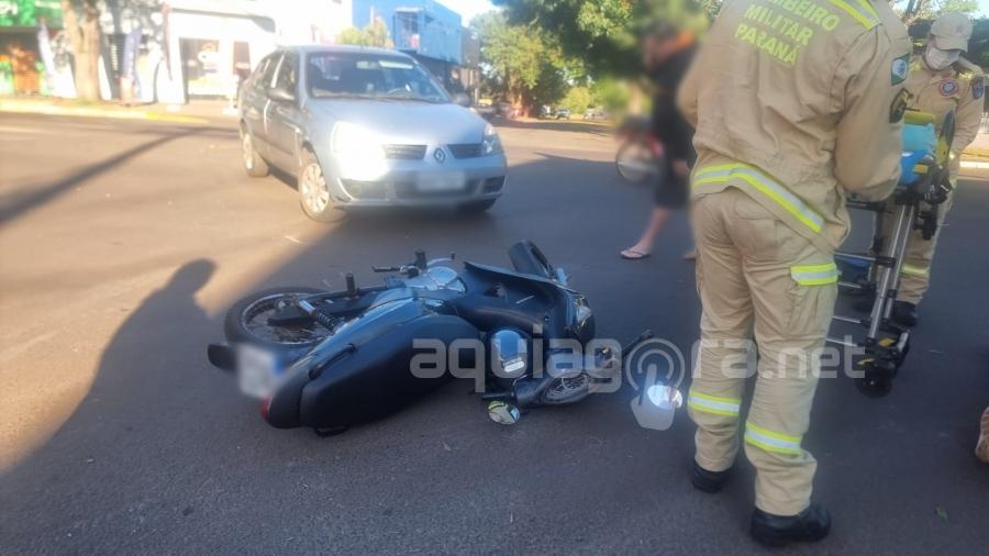 De acordo com informações, o Clio seguia pela Rua Amapá, e já na Avenida manobrou para a sua esquerda para seguir no sentido centro-Copagril. A moto estava indo do centro para a Copagril, momento em que houve o impacto.