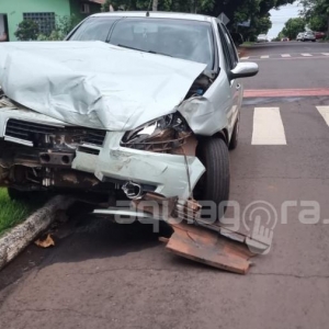 A colisão, envolvendo um Renault Scenic e um Fiat Palio, aconteceu no cruzamento das ruas Santa Catarina e Amir Dalla Vecchia.