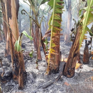 Segundo que falou o morador da chácara para reportagem o fogo foi posto pelo proprietário de uma chácara próxima para queimar um lixo e as chamas saíram do controle e se espalharam para a propriedade vizinha queimando além da vegetação rasteira, árvores nativas e também a plantação de bananeira que queimou parcialmente chegando próximo à residência de madeira do proprietário da chácara.