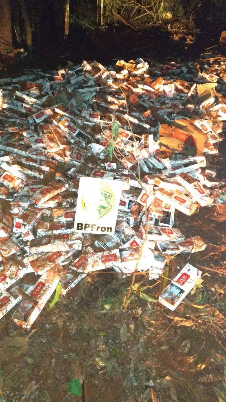 Na noite de ontem (25), em ação da Operação Hórus, Policiais Militares do BPFRON - Batalhão de Polícia de Fronteira realizavam patrulhamento em um porto clandestino no município de Guaíra, quando encontraram aproximadamente dez mil maços de cigarros paraguaios espalhados pelo chão do local.