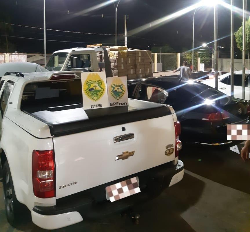 Policiais Militares do BPFRON - Batalhão de Polícia de Fronteira em conjunto com Policiais Militares do 25° Batalhão de Polícia Militar, em mais uma ação da Operação Hórus, realizaram na cidade de Umuarama, a apreensão de 3 veículos carregados com cigarros contrabandeados do Paraguai.