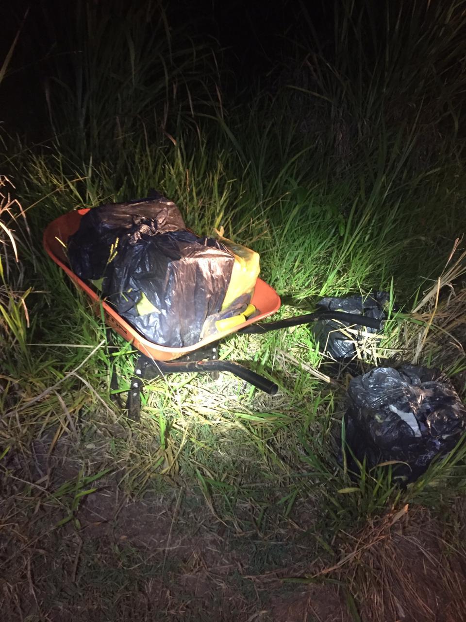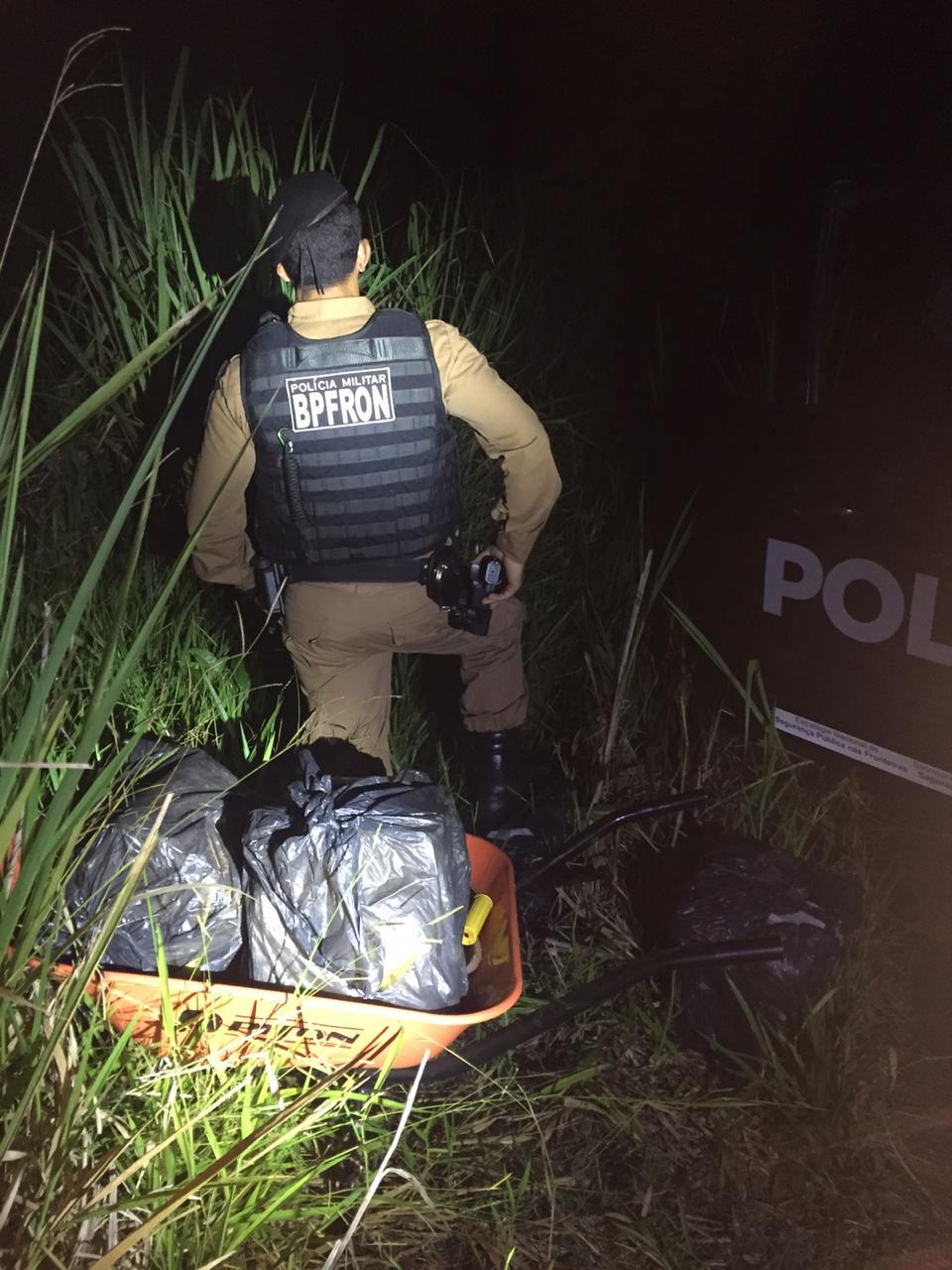 Na madrugada de hoje (05), Policiais Militares do BPFron - Batalhão de Polícia de Fronteira, em patrulhamento em uma estrada rural, situado às margens do rio Paraná, a equipe policial identificou que haviam alguns volumes escondidos na vegetação a margem da estrada e ao realizar a verificação, constataram que eram volumes de substância análoga a maconha, que posteriormente pesadas, aferiram 90 quilos de maconha.