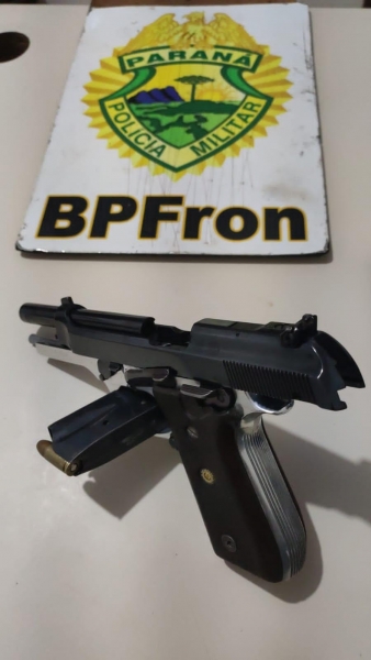 Em revista veicular foi encontrada uma pistola calibre 9 mm com nove munições.