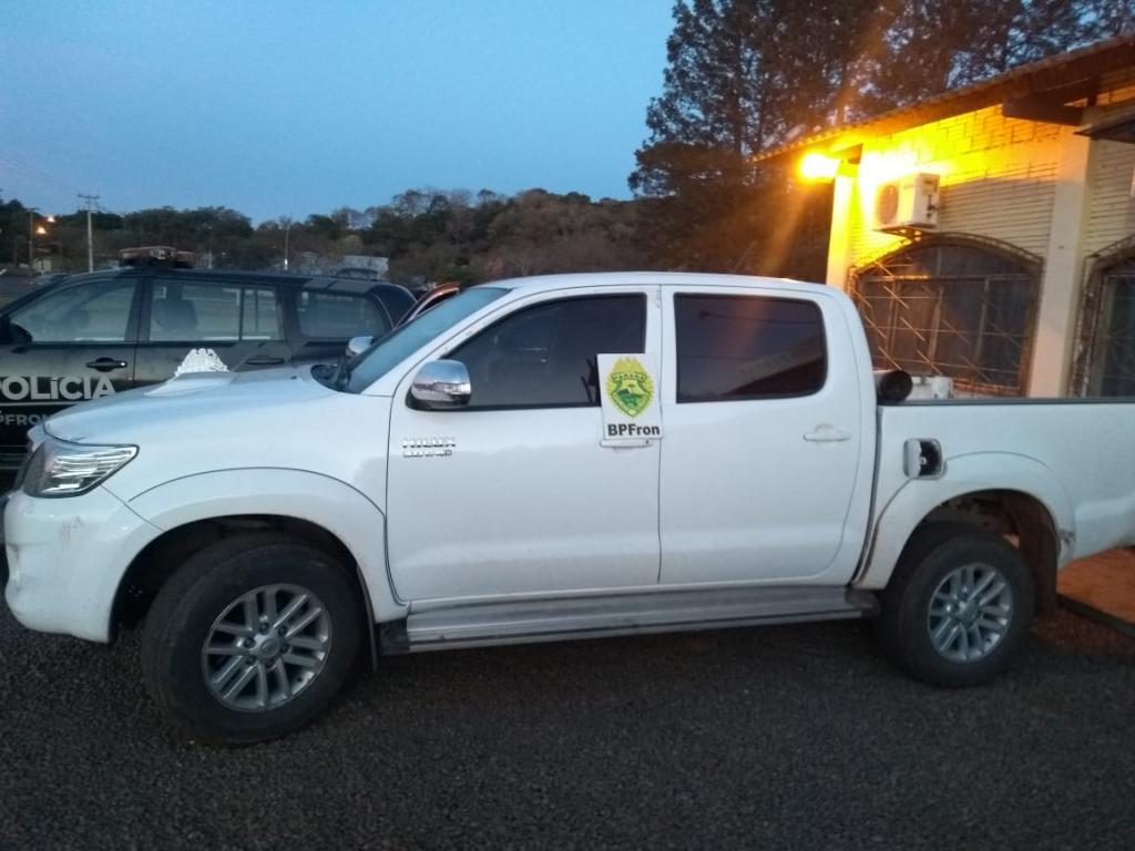 No final da tarde de hoje, (16) Policiais Militares do BPFRON - Batalhão de Polícia de Fronteira realizavam patrulhamento no interior da cidade de Santo Antônio do Sudoeste quando avistaram uma caminhonete Toyota Hilux de cor branca com placas paraguaias.