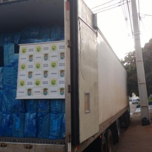 Ao verificar o baú da carreta contatou-se que estava carregada com cigarros de origem estrangeira totalizando aproximadamente 2 mil caixas.