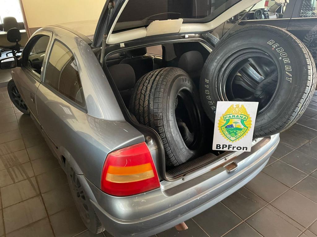 Nele foram encontrados oito pneus contrabandeados.