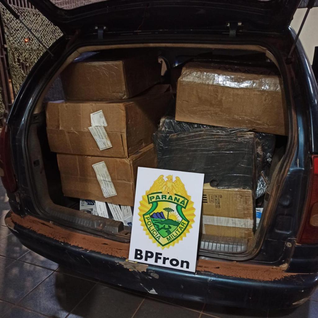 Na quarta-feira, (21) policiais militares do BPFRON - Batalhão de Polícia de Fronteira, em patrulhamento pela área rural de Guaíra/, visualizou um veículo onde ao se aproximar para efetuar a abordagem constatou-se que este estava carregado com cigarros contrabandeados do Paraguai, os indivíduos que realizavam o transporte evadiram-se do local e não foram localizados.