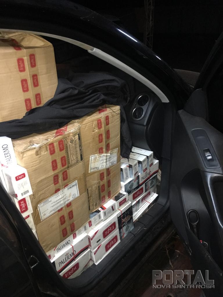 Realizado abordagem, foi constatado que o veículo estava carregado com cerca de 50 caixas de cigarros, cerca de 2.500 pacotes contrabandeados do Paraguai.
