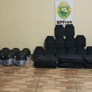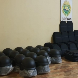 Ao ser feito a contagem do material bélico apreendido, chegou-se ao seguinte somatório: 40 capas para colete balístico, 80 coletes balísticos, 80 placas balísticas e 40 capacetes balísticos (sendo estes equipamentos bélicos, de acordo com o r-105), divididos em 13 caixas de papelão distribuídas da seguinte forma: 02 (duas) caixas dentro do veículo volkswagen jetta, 03 (três) caixas dentro do veículo ford courier, 04 (quatro) caixas na carroceria do iveco mássimo e 04 (quatro) caixas espalhadas pelo pátio.
