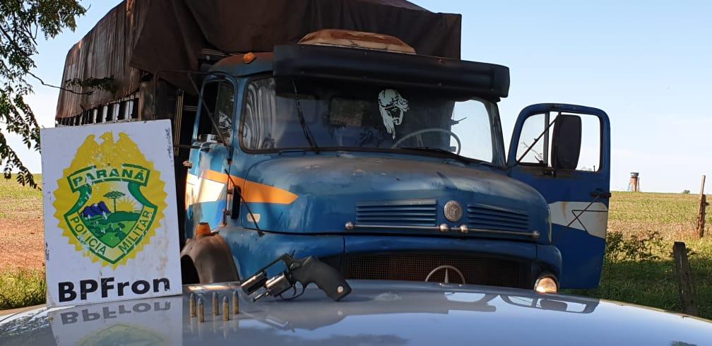 Neste sábado (18), Policiais Militares do BPFRON em patrulhamento na região de Francisco Alves com informações que no local haviam indivíduos fazendo carregamento de cigarros contrabandeados do Paraguai, e que no local havia um caminhão de cor azul, uma carreta de cor branca e um gol prata de batedor, de imediato iniciou as buscas.