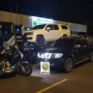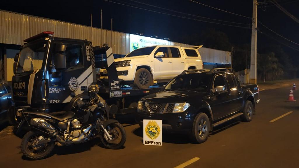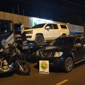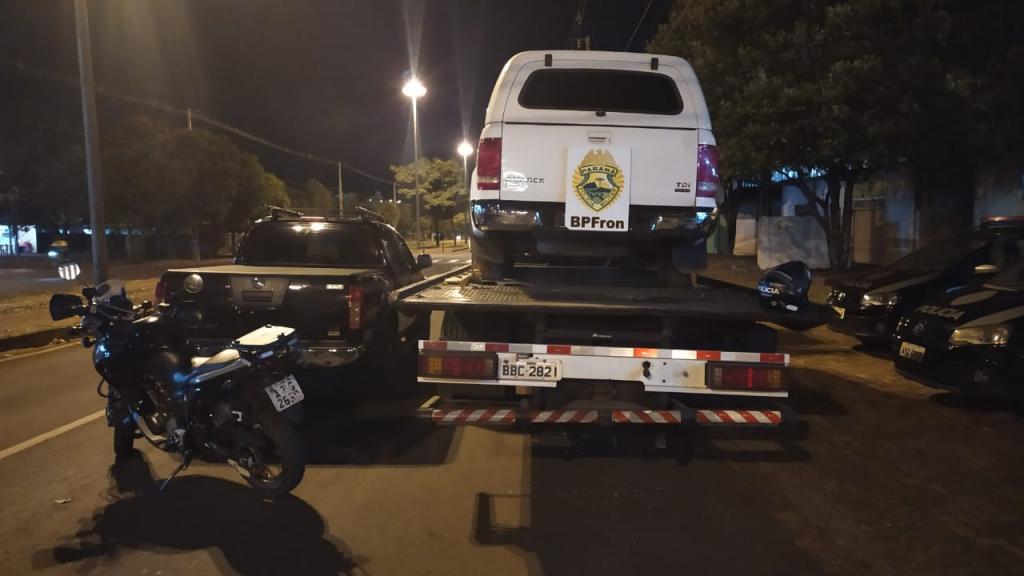 Dois veículos foram apreendidos pelo BPFRON - Batalhão de Polícia de Fronteira na tarde de ontem (17) em Guaíra. Os veículos portavam rádios transceptores e um deles estava carregado com caixas de cigarros contrabandeados do Paraguai. Na ação, um indivíduo foi baleado por Policiais do BPFRON logo após terem jogado o veículo contra os policiais sendo encaminhado a Unidade de Pronto Atendimento da cidade pelo SAMU .
