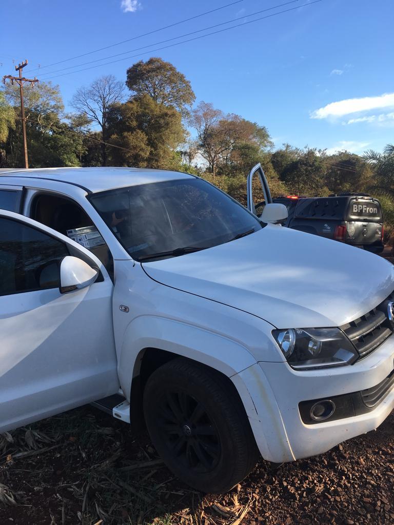 1 camionete VW/Amarok apreendida carregada com caixas de cigarros e portando um rádio transceptor
