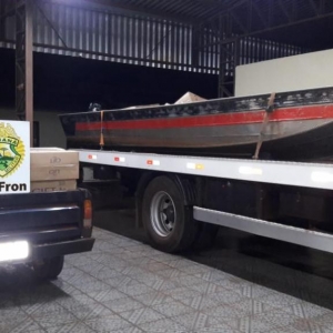 Na madrugada de hoje (30), policiais militares do BPFron - Batalhão de Polícia de Fronteira, através do Pelotão C.O.B.R.A. - Corpo de Operações de busca e Repressão Aquática, realizavam patrulhamento às margens do lago de Itaipu na cidade de Guaíra, quando avistaram uma embarcação de alumínio de seis metros onde indivíduos realizavam o transbordo de caixas da embarcação para um veículo Ford/Pampa.