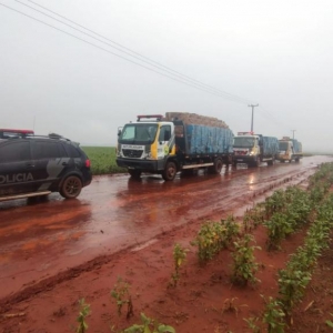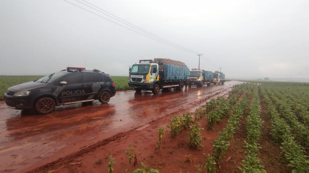 Devido a grande apreensão, foi solicitado apoio logístico do 25º Batalhão da Polícia Militar para realizar o transporte da apreensão.