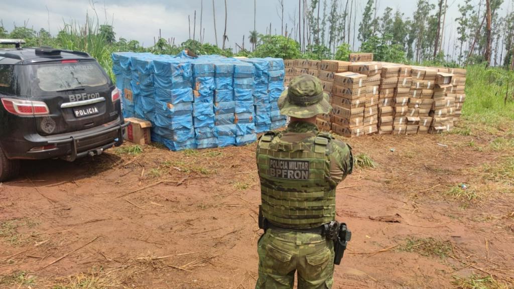 Em Iporã os policiais militares do BPFron visualizaram rastros de veículos em Iporã que levavam a uma clareira. Ao chegar no local se depararam com cerca de 800 caixas de cigarros contrabandeados.