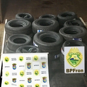 No interior da residência foram localizados 49 pneus contrabandeados do Paraguai. O indivíduo foi preso e encaminhado juntamente da arma, munições e contrabando para os procedimentos legais cabíveis.