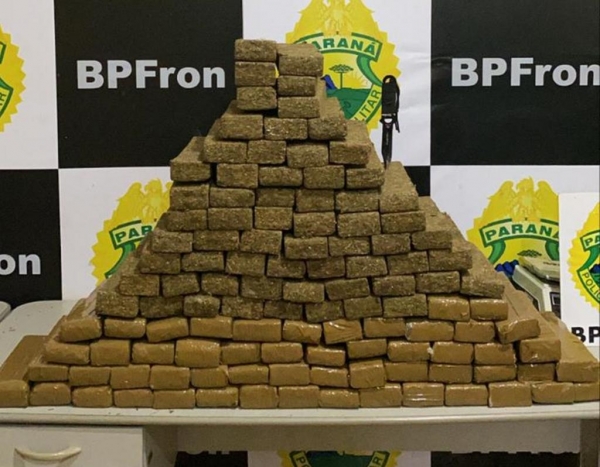 No veículo foram encontrados tabletes de substância análoga a maconha totalizando 78,55 kg da droga.