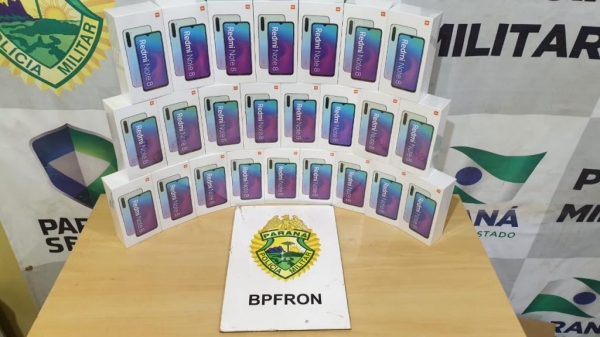 Um carregamento de smartphones de origem estrangeira foi apreendido por policiais militares do BPFron (Batalhão de Polícia de Fronteira), na madrugada de terça-feira (19). A apreensão aconteceu na BR 277, em Santa Tereza do Oeste.