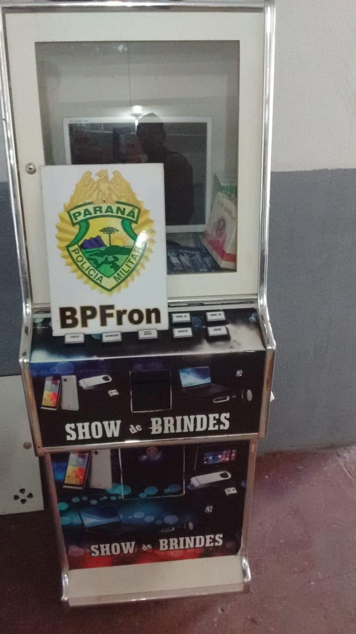 Os Policiais Militares do BPFron deslocaram-se até o endereço informado e realizaram a apreensão do equipamento e o proprietário do local responderá por manter tal ilegalidade nas dependências do estabelecimento.