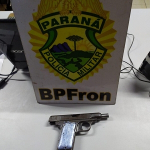 Nas buscas pelo local foi encontrada uma pistola calibre .765, Marca FN Herstal desmuniciada e sem carregador, diante dos fatos foi encaminhado o Proprietário do local juntamente com a arma para lavratura do Termo Circunstanciado, sendo as aves mantidas sob guarda do encaminhado até ulterior decisão.