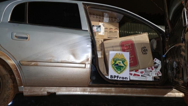 O carro estava carregado com 1.750 pacotes de cigarros contrabandeados. Veículo e contrabando apreendido foram encaminhados para a Receita Federal em Guaíra