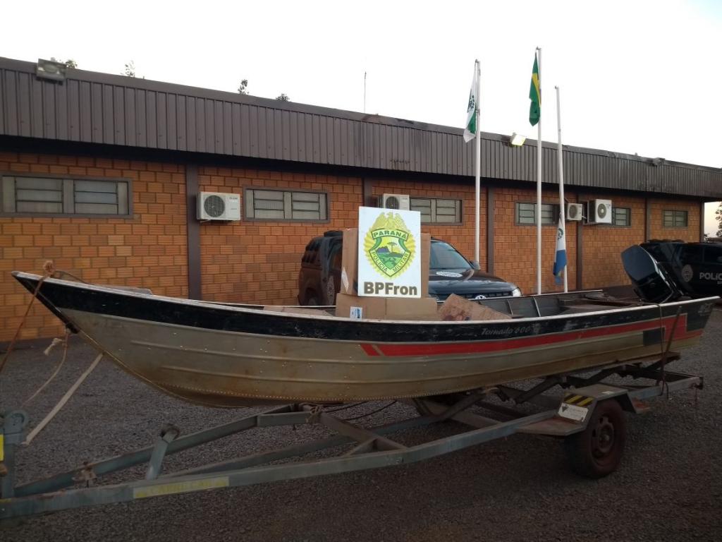 O detido e o material apreendido juntamente com o veículo e a embarcação foram encaminhados a Polícia Federal em Guaíra