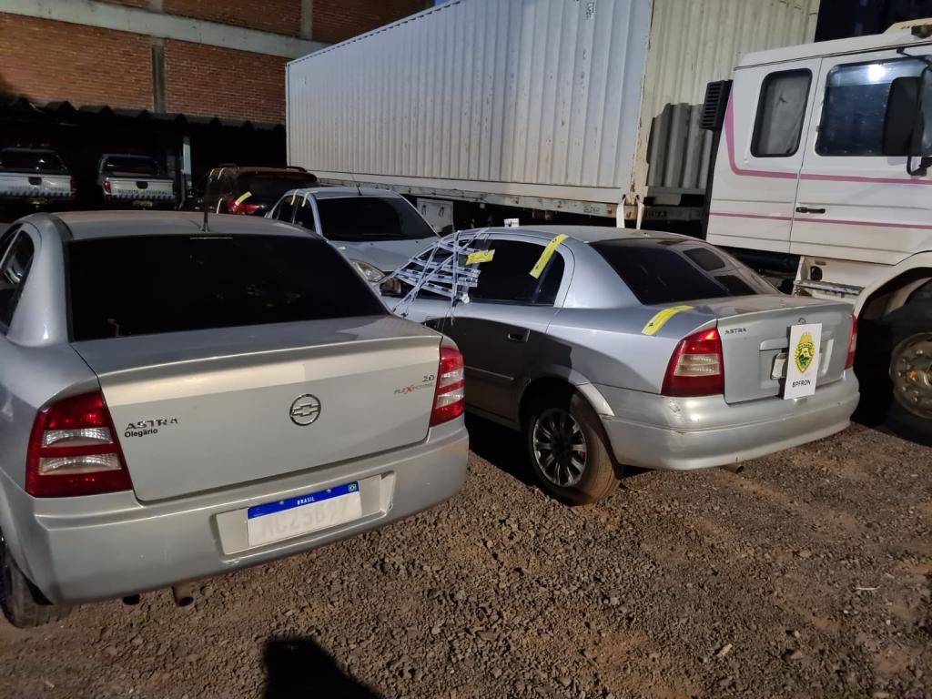 O condutor fugiu e não foi localizado. O segundo veículo foi abordado próximo ao portal da cidade sendo o condutor detido. Os carros estavam carregados com 2.500 pacotes de cigarros contrabandeados além de dois rádios comunicadores.