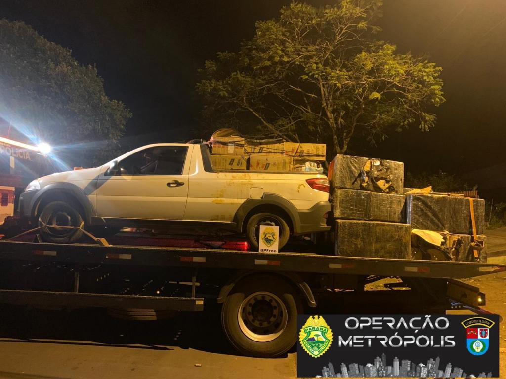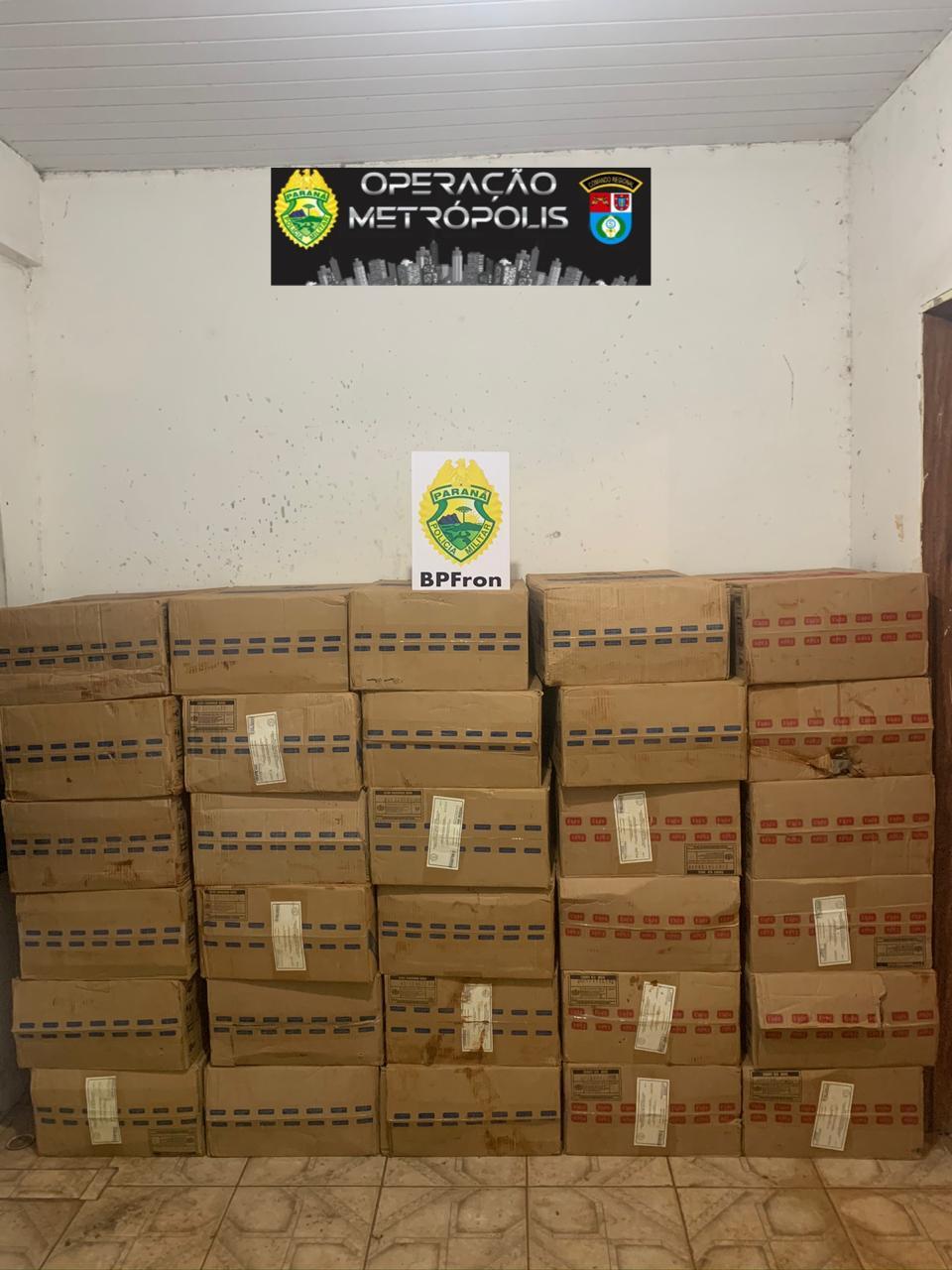 Nesta segunda-feira (24), Policiais Militares do BPFRON - Batalhão de Polícia de Fronteira, em ação da operação METRÓPOLIS, na cidade de Terra Roxa após denúncia recebida pela central de operação, informando que uma casa estaria sendo usada como depósito de mercadorias contrabandeadas, fato constatado pela equipe, na ocasião além dos volumes de contrabando na residência, também foram encontrados 3 veículos carregados com ilícito.