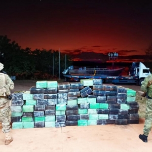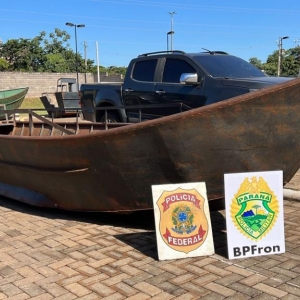 O barco, o motor e a droga foram apreendidos e encaminhados para a Delegacia da Polícia Federal em Guaíra.