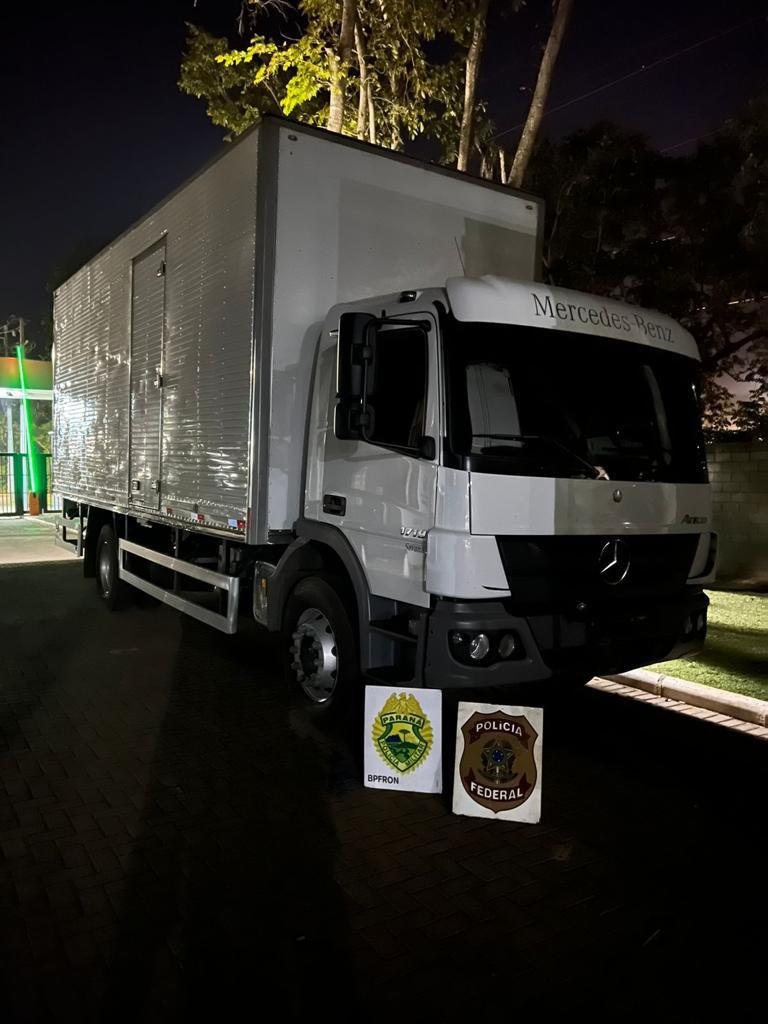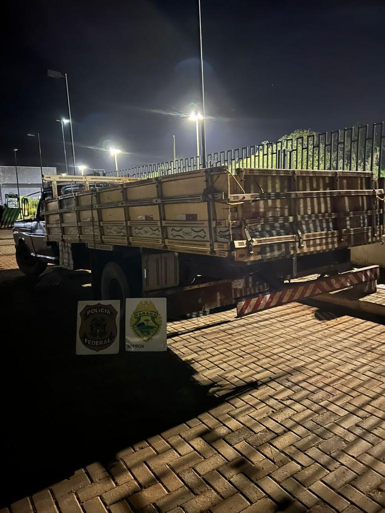 Durante buscas no local, foi constatado que além da embarcação carregada com 25 mil pacotes de cigarro contrabandeado, havia ainda um caminhão e um FORD/F350 que possuía alerta de furto/roubo.
