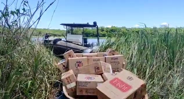 A ação da equipe policial integrada do COBRA/BPFRON, COE/BOPE e NEPOM/Polícia Federal resultou na apreensão de uma embarcação carregada com 2.250 pacotes de cigarros contrabandeados. Estima-se um prejuízo de R$100.000,00 ao crime organizado.