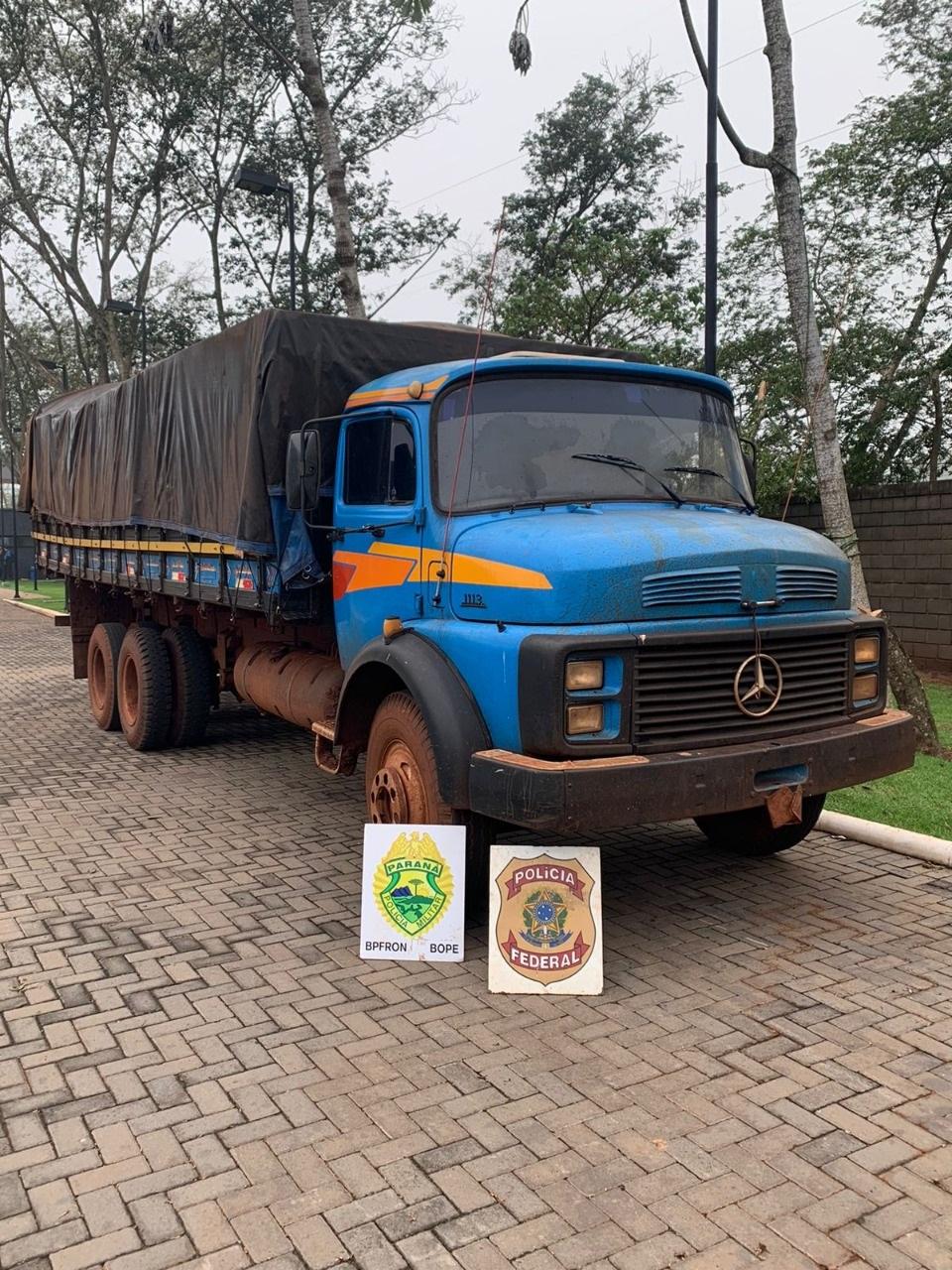 A ação da equipe policial integrada do COBRA/BPFRON, COE/BOPE e NEPOM/Polícia Federal resultou na apreensão de um caminhão 1113, um veículo GM/Astra e um total de 1.250 pacotes de cigarros contrabandeados.