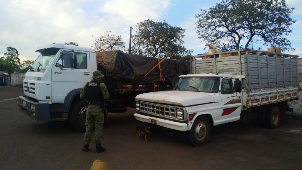 No local também foram apreendidos dois caminhões, que possivelmente seriam utilizados no transporte do carregamento.