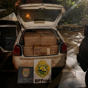 Foram realizadas buscas porém não foi possível encontrar o responsável. No veículo constatou que estava carregado com 1000 pacotes de de cigarros contrabandeadas do Paraguai.