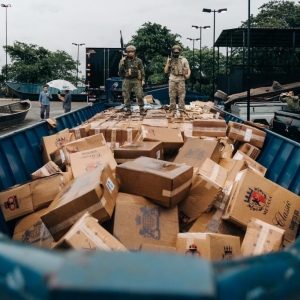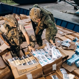 Foi constatado que o barco estava carregado com 400 caixas de cigarro contrabandeado.