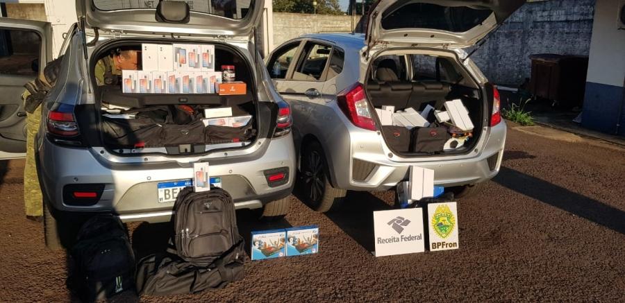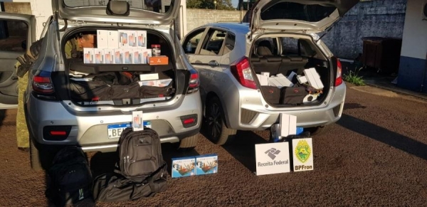 Ambos os veículos estavam carregados com produtos estrangeiros diversos, oriundos do Paraguai, sem os devidos processos de importação legal.