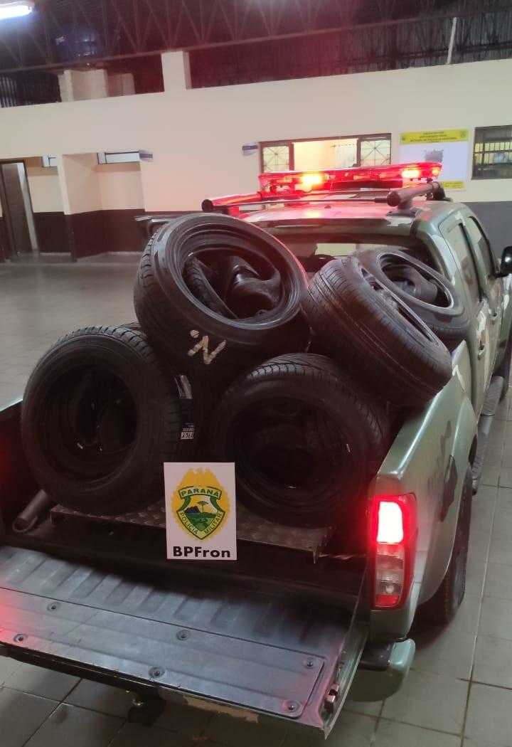 Ontem (04), durante patrulhamento pela estrada que dá acesso ao “Porto da Igrejinha", em Guaíra, Policiais Militares do BPFron, visualizaram em meio a mata 60 pneus, foram feitas buscas no local, sendo possível verificar que haviam diversos pneus contrabandeados.