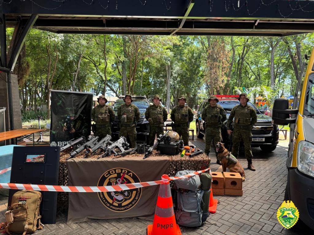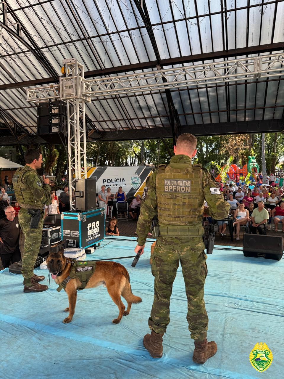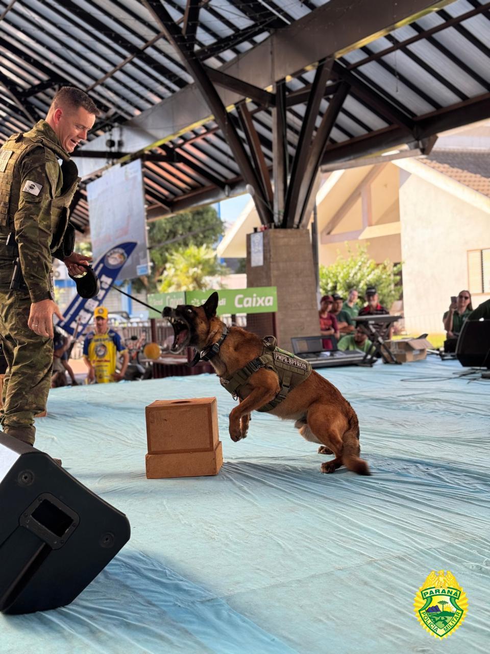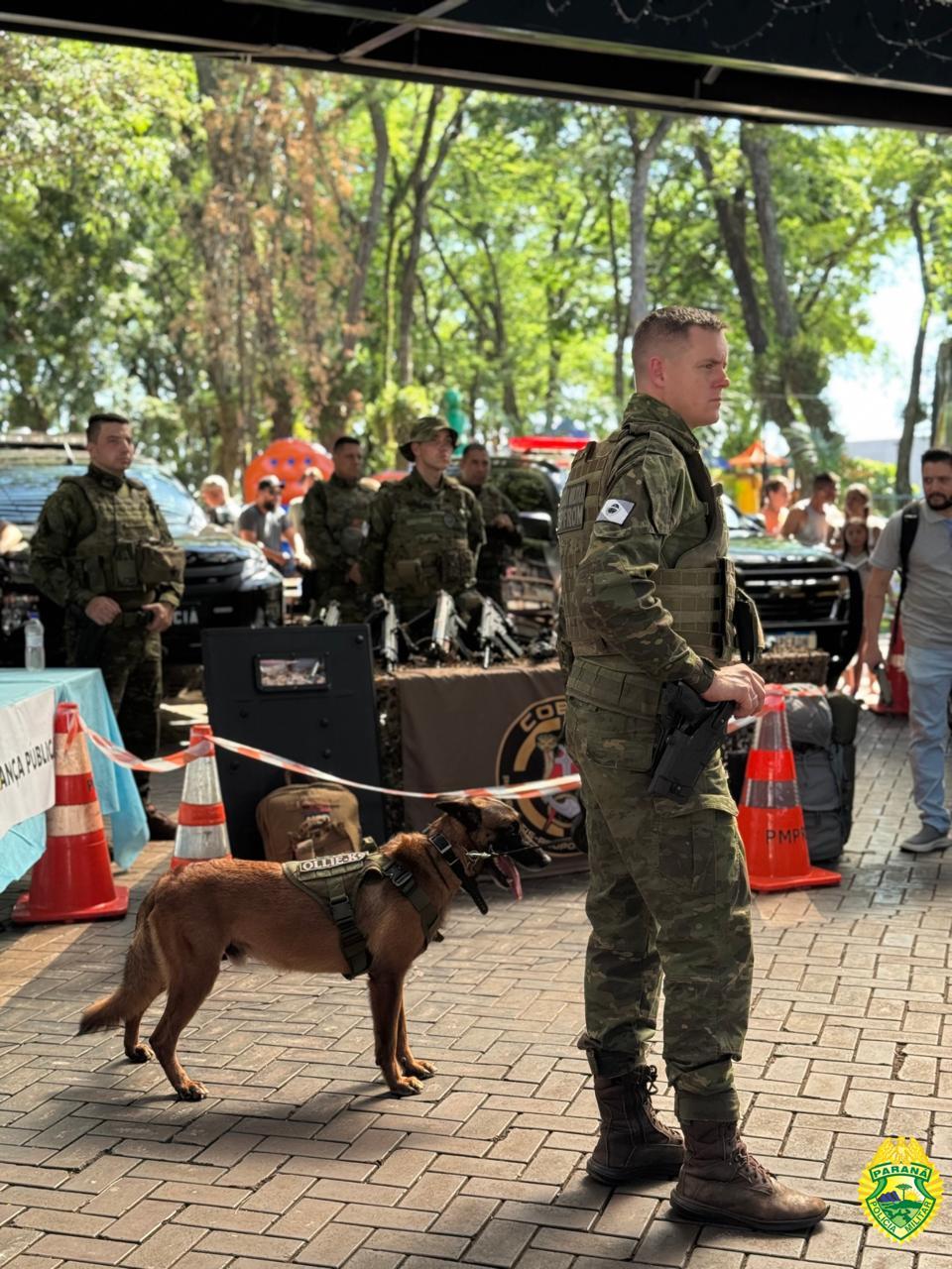 Durante o encontro, equipes do Pelotão de Operações com Cães e do Pelotão Cobra mostraram ao público parte dos equipamentos, viaturas e recursos usados no dia a dia da corporação. Entre as atividades, chamou a atenção a apresentação do cão Ollie, treinado para identificar substâncias ilícitas por meio do faro. A demonstração mostrou como o animal aponta o local correto e recebe uma recompensa como forma de estímulo, procedimento comum no trabalho especializado com cães.