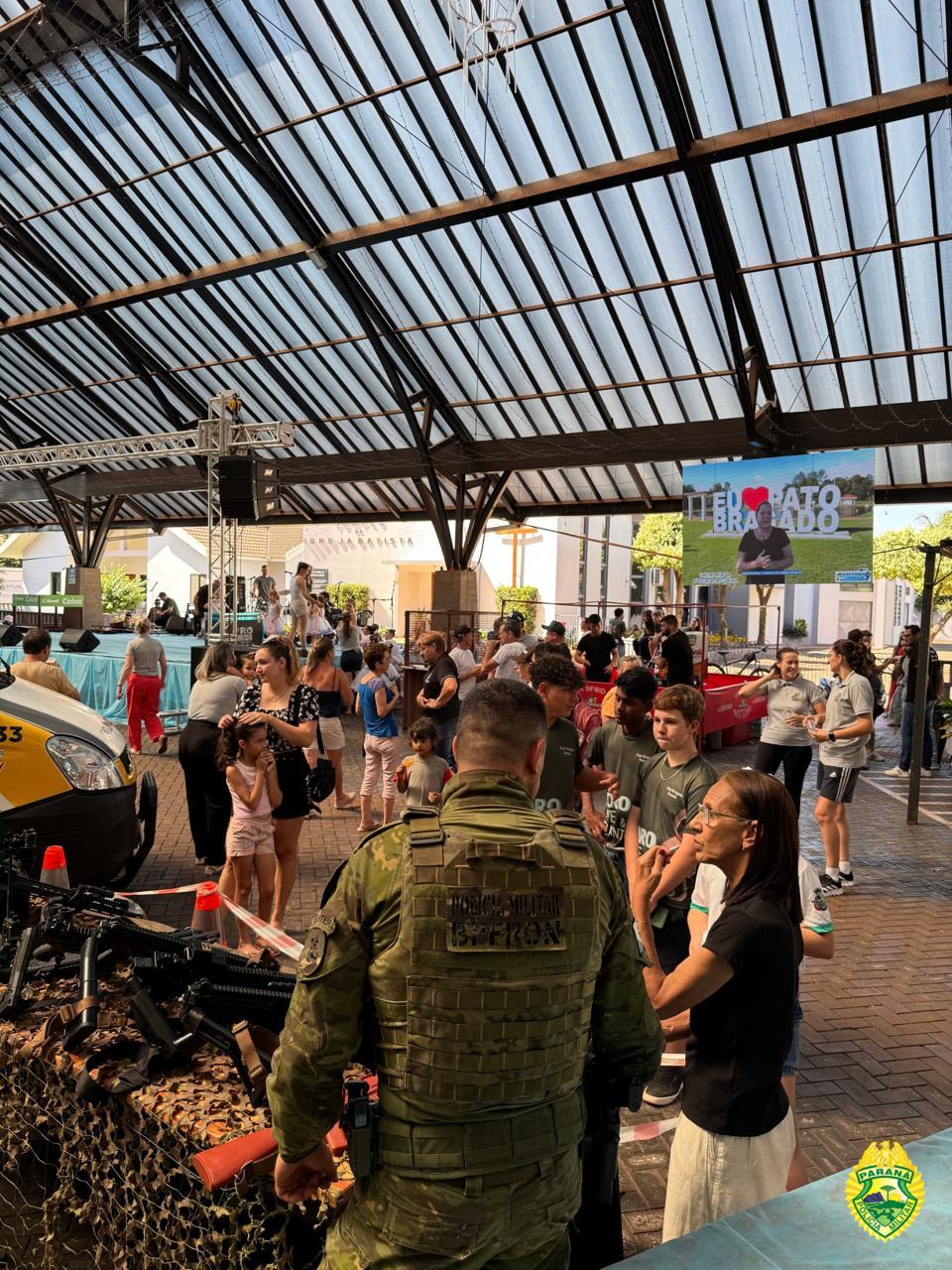 Pato Bragado recebeu no sábado (29) o lançamento do programa Governo nas Comunidades, realizado na Rua Coberta, e uma das atrações foi a participação do BPFron, unidade da Polícia Militar que atua na região de fronteira.