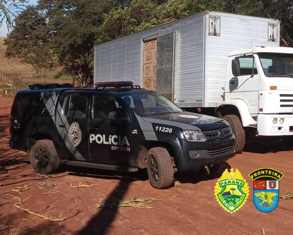 Na tarde de hoje (18), em ação da Operação Hórus Policiais Militares do BPFRON - Batalhão de Polícia de Fronteira em patrulhamento pela zona rural do município de Terra Roxa, visualizaram um caminhão baú, tendo o motorista percebido a presença dos policiais militares e aumentado a velocidade, sendo que logo à frente o veículo parou e o motorista empreendeu fuga em direção a mata . Em revista ao caminhão, contatou-se que estava carregado com aproximadamente 600 caixas de cigarro.
