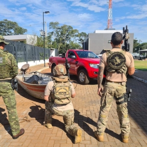 Ao se aproximarem do local, três indivíduos que estavam em um barco na rampa de acesso abandonaram o barco e fugiram em meio a mata lateral. Dois indivíduos foram detidos.