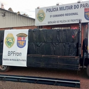 Na madrugada de hoje (29), no âmbito da Operação MEROM, Policiais Militares do BPFron - Batalhão de Polícia de Fronteira realizavam patrulhamento na cidade de Entre Rios do Oeste quando visualizaram um caminhão Ford/Cargo de cor prata.